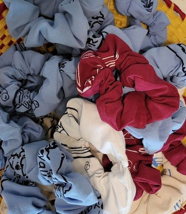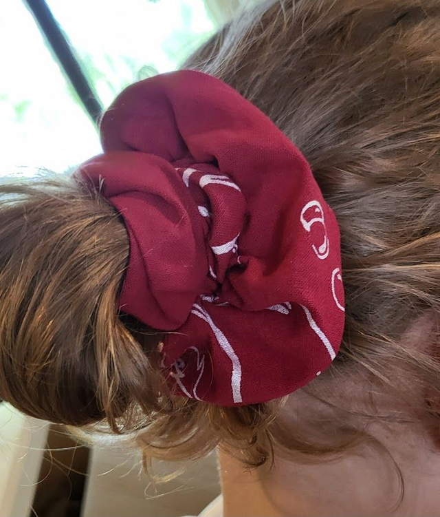 These hair scrunchies are made from leftover cotton fabric scraps .