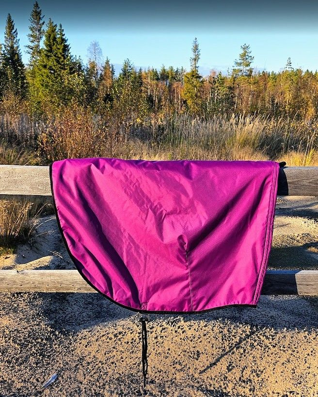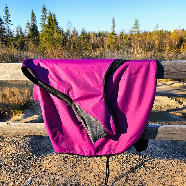 Kävelytys-/selän lämmitysloimi. Vuorellinen loimi on vedenpitävä ja siksi toimii hyvin sateisissa ja tuulisissa keleissä.