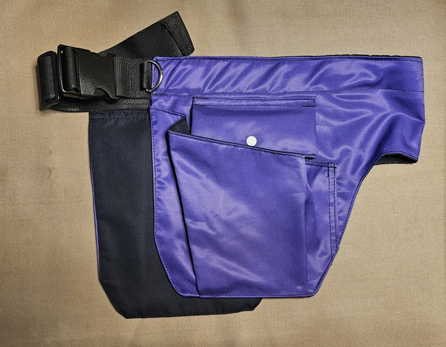 Koko M/L (vyötärö 85-108 cm). Tummansininen vuori, yksi D-lenkki.
