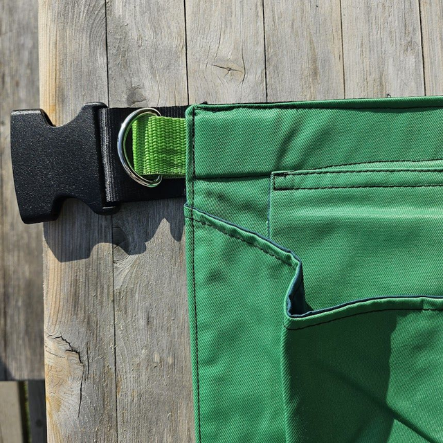 Green Enstex training belt. Water-repellent, size M (waist 83-110cm). Phone/treat pockets, D-ring. Eco-friendly from surplus fabrics. For dog training, equestrian, fishing & more. Pocet fits standard phones; flip phones may need custom sizing.
