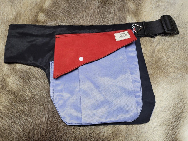 This training belt is perfectly suited for various activities like dog training, equestrian, hunting, fishing and more. It includes a dedicated phone pocket and a loop for a clicker or keys. The waistband is sewn from repurposed car seatbelts, and the entire training belt is eco-friendly, made from surplus fabrics.